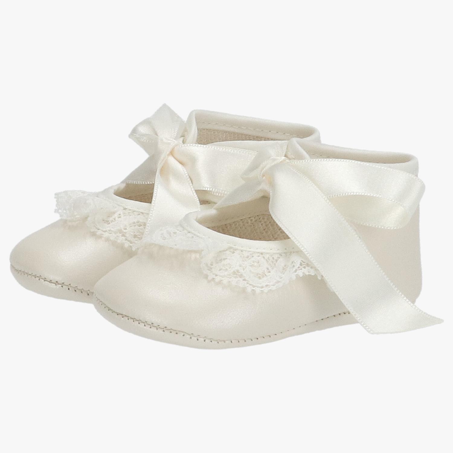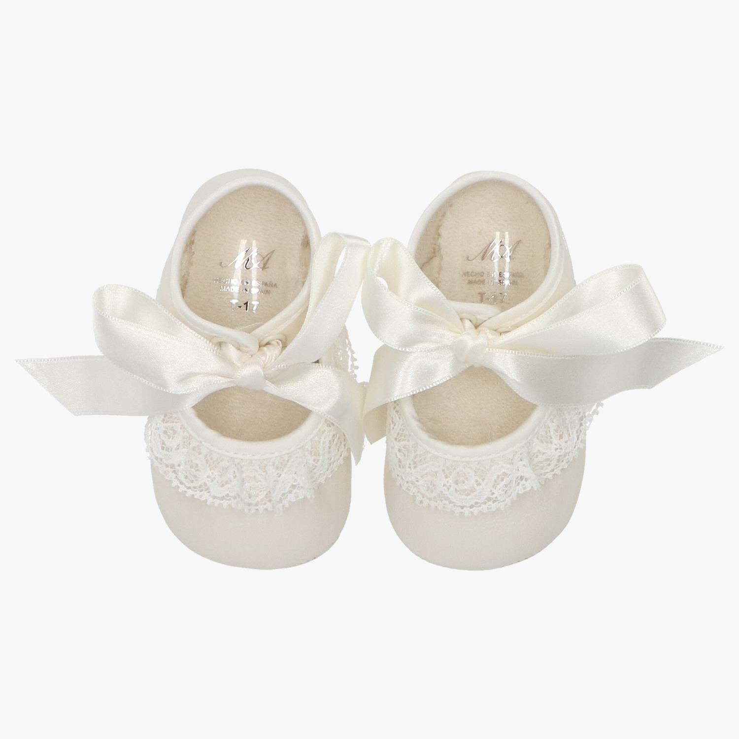 Lekre babysko fra det spanske luksusmerket Martin Aranda, i en myk skinnkvalitet med blondekant og søt pyntesløyfe. Passer perfekt til resten av Jazmin. Martin Aranda er små i størrelsen. Str. 16: 0-3 mnd. Str.17: 3-6 mnd. Str.18: 6-9 mnd. Str.19: 9-12 mnd. 100% Skinn.