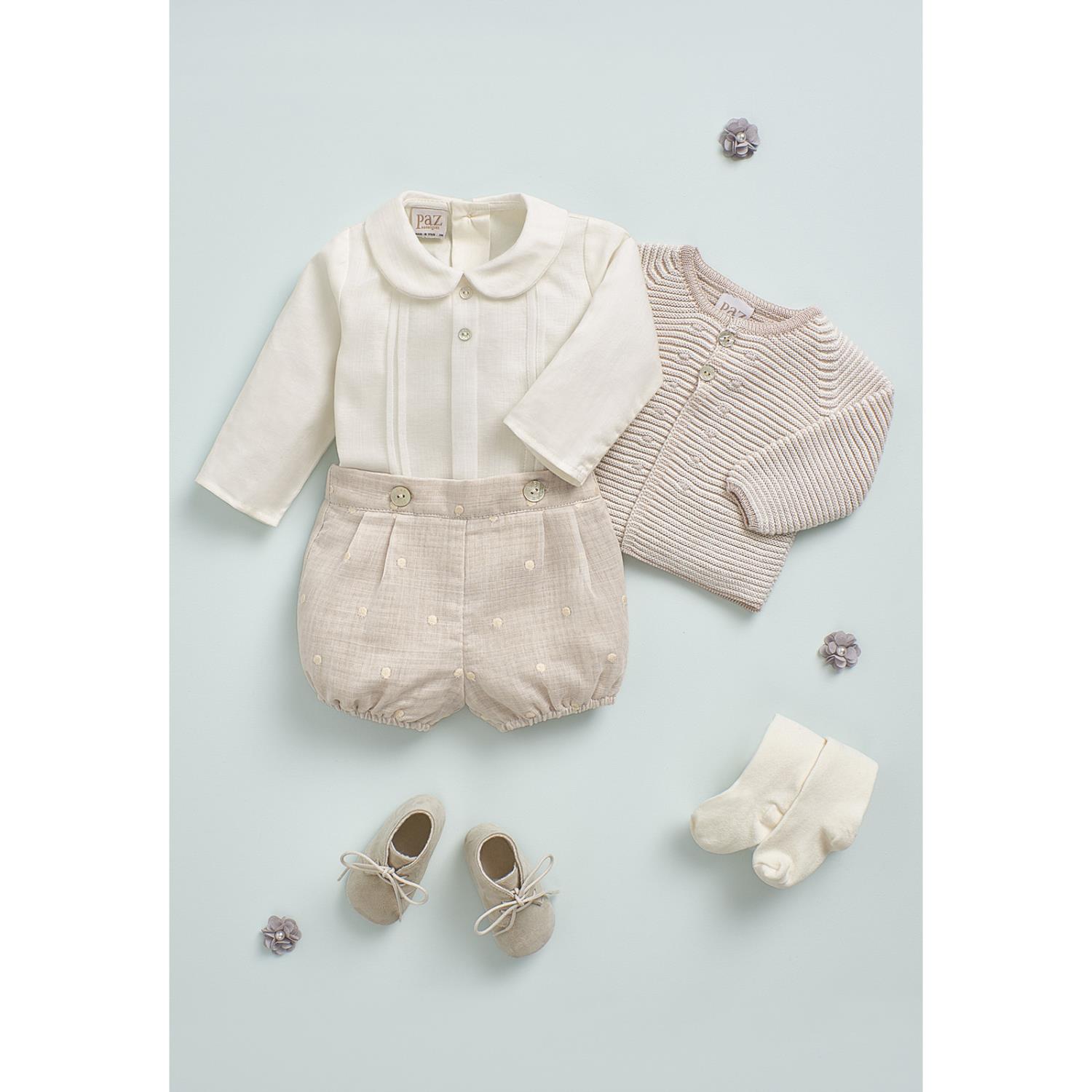 Lekker shorts for babygutter fra PAZ Rodriguez i brodert organzastoff med god elastikk i livet. Ideell for seremonier eller spesielle begivenheter. Passer fint sammen med cardigan, body og strømpebukse/strømper. PAZ Rodriguez er små i størrelsen. 100% Polyester, Fõr: 100% Bomull. 30 grader maskinvask.