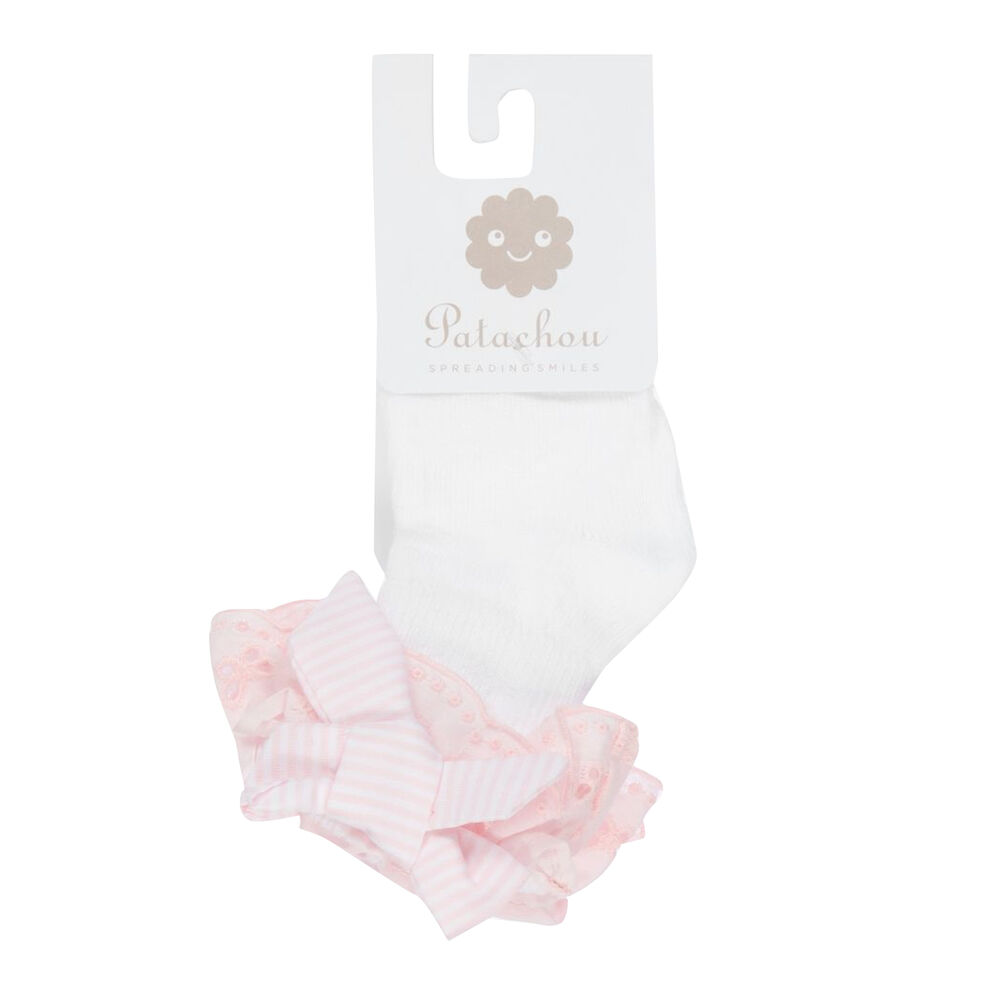 Nydelige bomulls-sokker med sløyfe fra det eksklusive, portugisiske merket Patachou, med en søt sløyfe på siden. Passer fint sammen med hatt i samme serie. Bomull. 30 grader maskinvask.