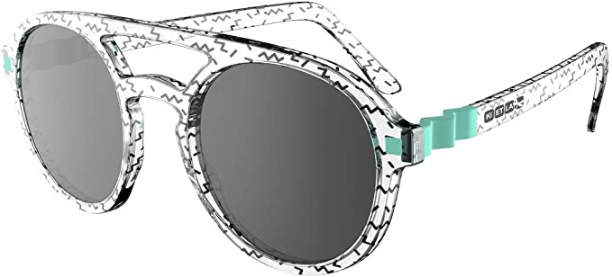 Superkule, kvalitets-solbriller fra franske KiETLA, med pilotform som er ekstra fleksible med Bi-material ramme med et ekstra fleksibelt ZigZag hengsel for manipulering av templene i alle retninger samt umulig å klemme de små fingrene. Solbrillene hhar høy beskyttelse, kategori 3 polariserte linser, anti-UVA, UVB og UVC filter samt overdimensjonert form som perfekt dekker og beskytter barnas øyne. I tillegg er solbrillene veldig lette for topp komfort. Oppbevaringspose følger med i den gjenbrukbare og resirkulerbare pappvesken. Str. 6-9 år.